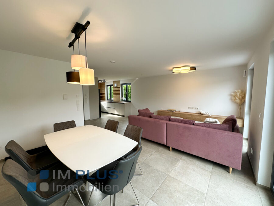Die Doppelhaushälfte überzeugt mit einer hochwertigen, modernen Ausstattung. Im Kaufpreis enthalten ist eine neue Einbauküche mit eleganten Fronten und Marken-Elektrogeräten, die nahtlos in den offenen Wohn- und Essbereich integriert ist.