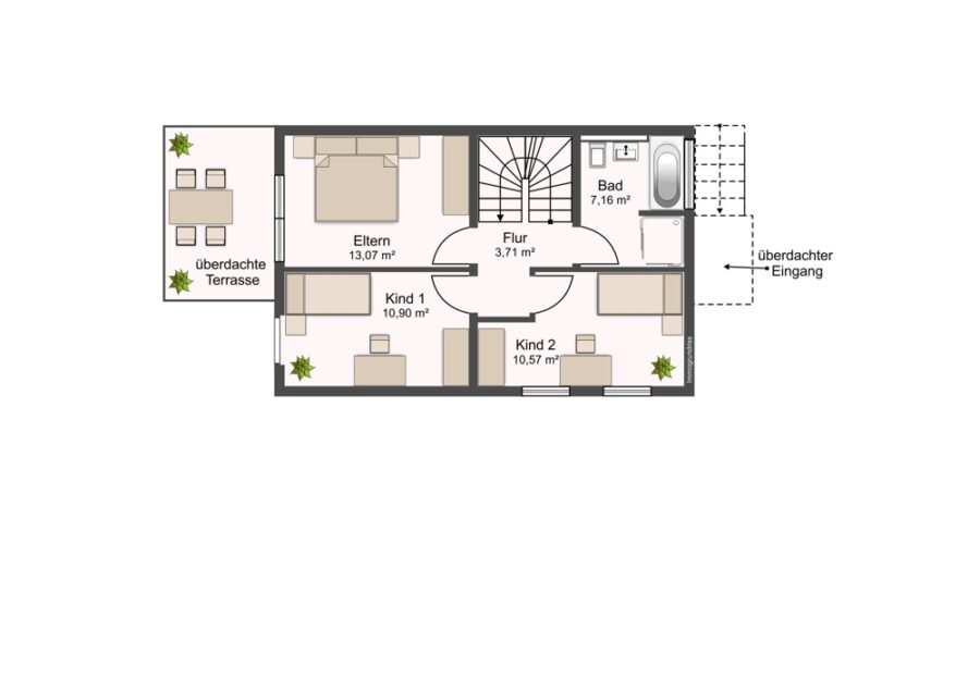 Im Obergeschoss befinden sich drei gut geschnittene Schlafzimmer, die flexibel als Elternschlafzimmer, Kinderzimmer oder Homeoffice genutzt werden können. Das moderne Badezimmer überzeugt mit hochwertigen Armaturen, bodengleicher Dusche und stilvollem Design. Das Dachgeschoss bietet ein großzügiges, vielseitig nutzbares Studiozimmer – ideal als Arbeitsbereich, Gästezimmer oder privater Rückzugsort.