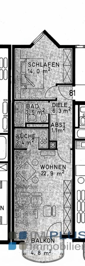 Die Wohnung überzeugt durch einen gut geschnittenen Grundriss und ist mit Laminatboden ausgestattet. Eine Einbauküche ist bereits vorhanden und im Kaufpreis enthalten. Das Badezimmer entspricht dem Baujahr und bietet Potenzial für eine zukünftige Modernisierung.